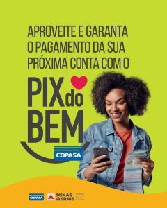 Esse mesmo tipo de campanha está sendo desenvolvida em diversos municípios e as cidades que conseguirem se destacar nos pagamentos das faturas de água via Pix serão selecionadas para indicarem uma entidade social e/ou ambiental para receberem uma doação concedida pela Copasa.