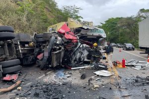 O motorista da carreta morreu no local, já o que conduzia o caminhão, foi resgatado por uma equipe dos Bombeiros e levado para o Hospital São Paulo por profissionais da Eco RioMinas com diversos ferimentos, porém, consciente e orientado. Ainda não se sabe a identidade