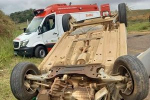 Duas mulheres ficaram feridas após o carro em que estavam capotar na estrada que liga Patrocínio do Muriaé a Barão do Monte Alto na manhã deste domingo (22).