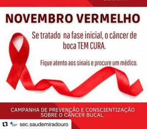 A Secretaria de Saúde de Miradouro apoia a campanha Novembro Vermelho, de prevenção e conscientização sobre câncer bucal.