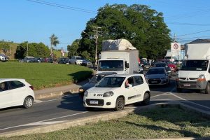 O motorista da carreta não conseguiu parar e pressionou a caminhonete no meio-fio. O motorista da caminhonete e o da carreta não se feriram. Em poucos minutos formou-se um congestionamento na rodovia.