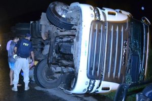A Polícia Rodoviária Federal foi acionada, registrou a ocorrência e controlou o trânsito. Um guincho foi chamado na manhã desta quarta-feira para retirar a carreta.
