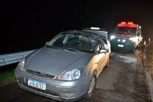 Com o impacto, a carreta chegou a tombar. O carro sofreu diversos danos, entretanto, o motorista não teve ferimentos.