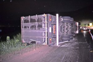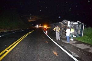 A Polícia Rodoviária Federal foi acionada, registrou a ocorrência e controlou o trânsito. Um guincho foi chamado na manhã desta quarta-feira para retirar a carreta.