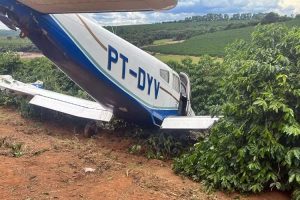 Uma aeronave com cinco tripulantes, que decolou de Muriaé, precisou fazer um pouso forçado nesta terça-feira (26) em uma lavoura de Café em Carmo da Cachoeira, no sul do Estado. De acordo com a imprensa local, nenhum dos tripulantes se feriu. O destino era Atibaia-SP. O piloto era um aluno da Escola de Aviação instalada em Muriaé. Ele estava realizando uma navegação de treinamento.