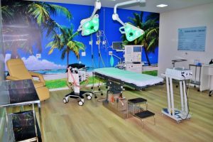 O espaço conta com dois apartamentos, dois leitos de recuperação, pós-anestésica, duas salas cirúrgicas, uma farmácia, um consultório, duas recepções e um espaço onde o médico poderá descansar em um intervalo de um procedimento para o outro.