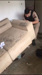 A PM de Miradouro, com reforço da equipe de Vieiras, iniciou o rastreamento em um local onde já tinham o conhecimento de que o autor costumava esconder materiais. Em meio às buscas foram encontrados: