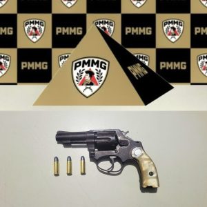 Na revista, foi encontrado um Revólver Calibre .32 com três munições intactas em posse do condutor. Diante do flagrante, o condutor foi preso por porte ilegal de arma de fogo e, devido a irregularidades administrativas, a motocicleta foi removida, sendo o condutor autuado também por inabilitação. O autor foi conduzido à Delegacia de Polícia de Muriaé.
