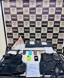 Em diligências continuadas na residência vinculada ao autor, a PMMG localizou um colete balístico com numeração suprimida, capas de colete, munições deflagradas, além de uma tornozeleira eletrônica rompida, indicando que o autor descumpria medidas judiciais. Também foram apreendidos rádios comunicadores e farto material para endolagem de drogas.