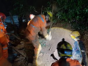 Após cerca de quatro horas de trabalho ininterrupto, o corpo da vítima foi localizado às 4h38min. Devido à grande quantidade de terra, entulhos, grades e raízes de árvores sobre o corpo, a operação de resgate foi concluída por volta das 6h30, quando a vítima foi retirada e repassada à Polícia Civil para as providências legais. Não foi possível a identificação da vítima, sabendo-se apenas que era masculino de aproximadamente 50 anos.