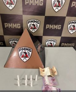Após o recebimento de uma denúncia anônima sobre a comercialização de entorpecentes na Rua Padre Raimundo Nonato de Carvalho, a guarnição policial deslocou-se para averiguação e abordou um adolescente de 16 anos. Durante a busca, foram localizados em poder do menor 07 pinos de substância análoga à cocaína e R$ 60,00 em dinheiro.
